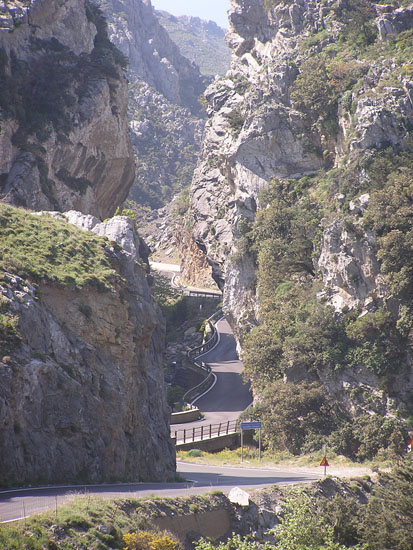 There are two roads into Plakias through the mountain range which lies to its north, both of which run through gorges - to the north of Plakias, the Kotsifos Gorge, and to the northeast, the Kourtaliotiko Gorge.